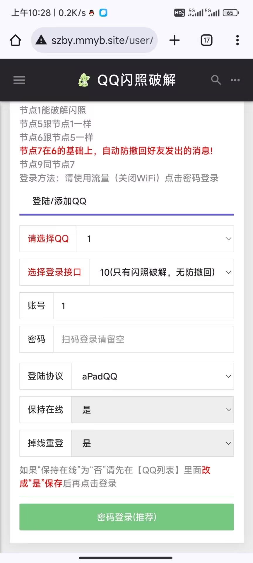 在这个页面,使用购买的卡密,激活QQ授权(注意不要写错自己的QQ号),激活后,点击【登录QQ】,输入QQ密码,点击登录